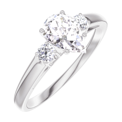 Inel Aur alb 9 carate - Diamante de laborator Pară 0.5 carate - Pietre laterale Diamante de laborator