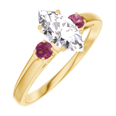 « L'ATELIER » NR. 182942Inel Aur galben 9 carate - Diamante de laborator Marquise 0.5 carate - Pietre laterale Rubin