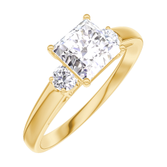 Inel Aur galben 9 carate - Diamante de laborator Princess 0.7 carate - Pietre laterale Diamante de laborator
