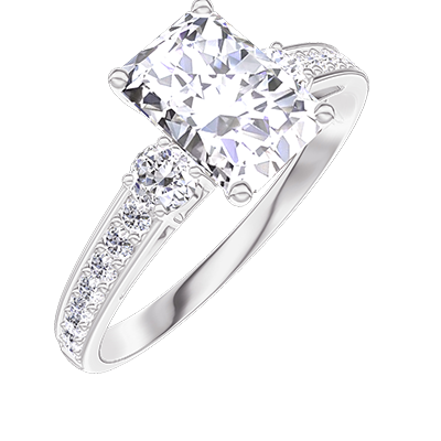 « L'ATELIER » NR. 185028Inel Aur alb 9 carate - Diamante de laborator Smarald 0.7 carate - Pietre laterale Diamante de laborator - Încrustare Diamante de laborator