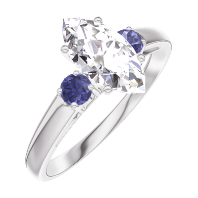 « L'ATELIER » NR. 185364Inel Aur alb 9 carate - Diamante de laborator Marquise 0.7 carate - Pietre laterale Safir albastru
