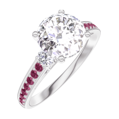 Inel Aur alb 9 carate - Diamante de laborator rotund 1 carate - Pietre laterale Diamante de laborator - Încrustare Rubin