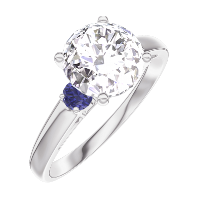 « L'ATELIER » NR. 187264Inel Aur alb 9 carate - Diamante de laborator rotund 1 carate - Pietre laterale Safir albastru 4.9