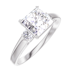 Inel Aur alb 18 carate - Diamante de laborator Princess 1 carate - Pietre laterale Diamante de laborator