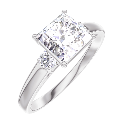 « L'ATELIER » NR. 187323Inel Aur alb 18 carate - Diamante de laborator Princess 1 carate - Pietre laterale Diamante de laborator