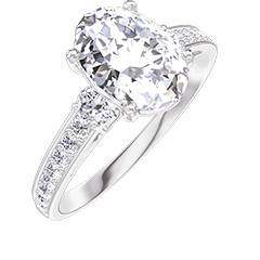 Inel Aur alb 9 carate - Diamante de laborator Oval 1 carate - Pietre laterale Diamante de laborator - Încrustare Diamante de laborator