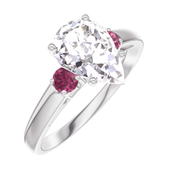 Inel Aur alb 9 carate - Diamante de laborator Pară 1 carate - Pietre laterale Rubin
