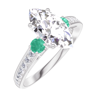 « L'ATELIER » NR. 187788Inel Aur alb 9 carate - Diamante de laborator Marquise 1 carate - Pietre laterale Smarald - Încrustare Diamante de laborator