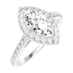 Inel Aur alb 9 carate - Diamante de laborator Marquise 0.5 carate - Halo Diamante de laborator - Încrustare Diamante de laborator