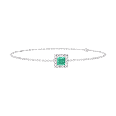 « L'ATELIER » Nº200811Brăţară Aur alb 18 carate - Smarald Princess 0.3 carate - Halo Diamant - Lanţ Zale
