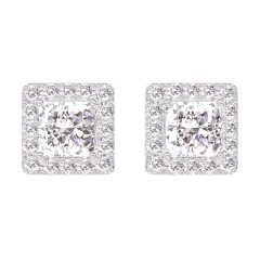 Cercei Aur alb 18 carate - Diamant Princess 0.3 carate (2 X) - Halo Diamant
