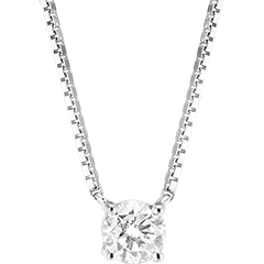 Colier Aur alb 9 carate - Diamant rotund 0.3 carate - Lanţ Veneţian