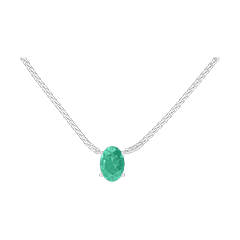 Colier Aur alb 18 carate - Smarald Oval 0.3 carate - Lanţ Veneţian