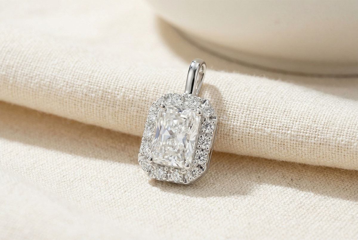 « L'ATELIER » NR. 202835Pandantiv Aur alb 18 carate - Diamant Smarald 0.3 carate - Halo Diamant - Fără lanţ