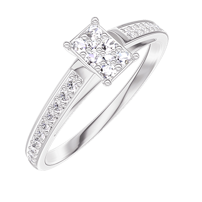 « L'ATELIER » NR. 209207Inel Aur alb 18 carate - Cluster de diamante naturale Smarald echivalent 0.3 - Încrustare Diamant