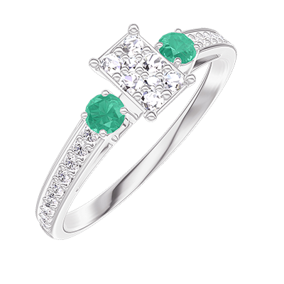 « L'ATELIER » NR. 209288Inel Aur alb 9 carate - Cluster de diamante naturale Smarald echivalent 0.3 - Pietre laterale Smarald - Încrustare Diamant