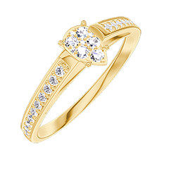 Inel Aur galben 9 carate - Cluster de diamante naturale Pară echivalent 0.3 - Încrustare Diamant
