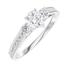 Inel Aur alb 9 carate - Cluster de diamante naturale Pară echivalent 0.3 - Pietre laterale Diamant - Încrustare Diamant
