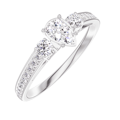 « L'ATELIER » NR. 209428Inel Aur alb 9 carate - Cluster de diamante naturale Pară echivalent 0.3 - Pietre laterale Diamant - Încrustare Diamant
