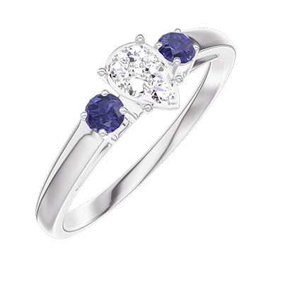 « L'ATELIER » NR. 209464Inel Aur alb 9 carate - Cluster de diamante naturale Pară echivalent 0.3 - Pietre laterale Safir albastru