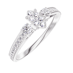 Inel Aur alb 9 carate - Cluster de diamante naturale Marquise echivalent 0.3 - Pietre laterale Diamant - Încrustare Diamant