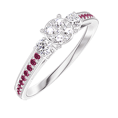 Inel Aur alb 9 carate - Cluster de diamante naturale rotund echivalent 0.5 - Pietre laterale Diamant - Încrustare Rubin