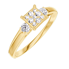 « L'ATELIER » NR. 209722Inel Aur galben 9 carate - Cluster de diamante naturale Princess echivalent 0.5 - Pietre laterale Diamant