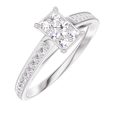 « L'ATELIER » NR. 209807Inel Aur alb 18 carate - Cluster de diamante naturale Smarald echivalent 0.5 - Încrustare Diamant