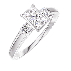 « L'ATELIER » NR. 209824Inel Aur alb 9 carate - Cluster de diamante naturale Smarald echivalent 0.5 - Pietre laterale Diamant