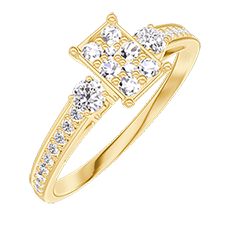 Inel Aur galben 18 carate - Cluster de diamante naturale Smarald echivalent 0.5 - Pietre laterale Diamant - Încrustare Diamant