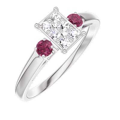 « L'ATELIER » Nº209844Inel Aur alb 9 carate - Cluster de diamante naturale Smarald echivalent 0.5 - Pietre laterale Rubin