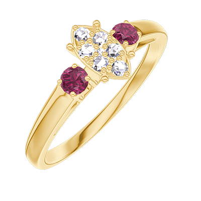 « L'ATELIER » NR. 210142Inel Aur galben 9 carate - Cluster de diamante naturale Marquise echivalent 0.5 - Pietre laterale Rubin