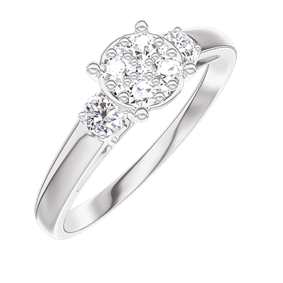 « L'ATELIER » NR. 210224Inel Aur alb 9 carate - Cluster de diamante naturale rotund echivalent 0.7 - Pietre laterale Diamant 5