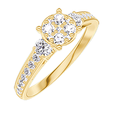Inel Aur galben 9 carate - Cluster de diamante naturale rotund echivalent 0.7 - Pietre laterale Diamant - Încrustare Diamant
