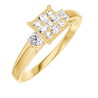 « L'ATELIER » NR. 210321Inel Aur galben 18 carate - Cluster de diamante naturale Princess echivalent 0.7 - Pietre laterale Diamant