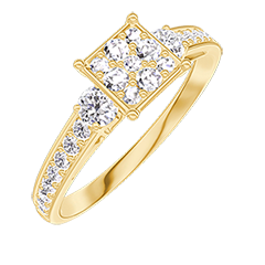 « L'ATELIER » NR. 210326Inel Aur galben 9 carate - Cluster de diamante naturale Princess echivalent 0.7 - Pietre laterale Diamant - Încrustare Diamant