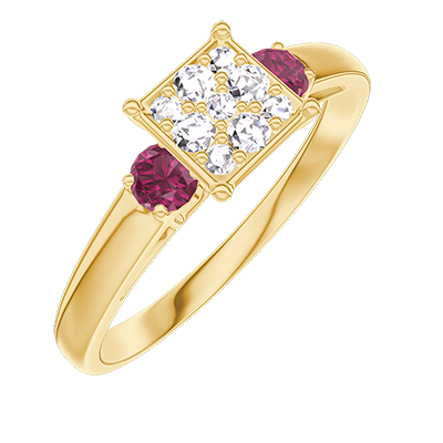 « L'ATELIER » NR. 210341Inel Aur galben 18 carate - Cluster de diamante naturale Princess echivalent 0.7 - Pietre laterale Rubin