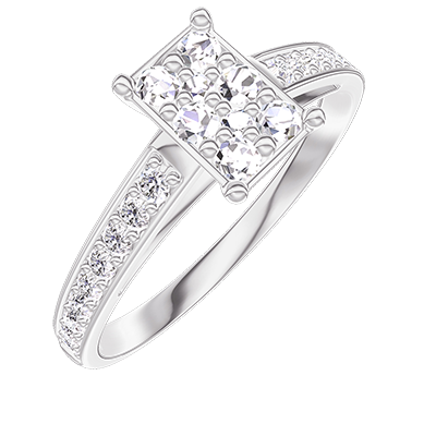 « L'ATELIER » NR. 210407Inel Aur alb 18 carate - Cluster de diamante naturale Smarald echivalent 0.7 - Încrustare Diamant
