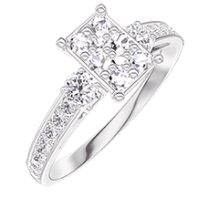 Inel Aur alb 18 carate - Cluster de diamante naturale Smarald echivalent 0.7 - Pietre laterale Diamant - Încrustare Diamant