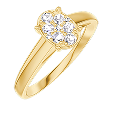 Inel Aur galben 9 carate - Cluster de diamante naturale Oval echivalent 0.7