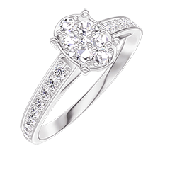 « L'ATELIER » NR. 210507Inel Aur alb 18 carate - Cluster de diamante naturale Oval echivalent 0.7 - Încrustare Diamant