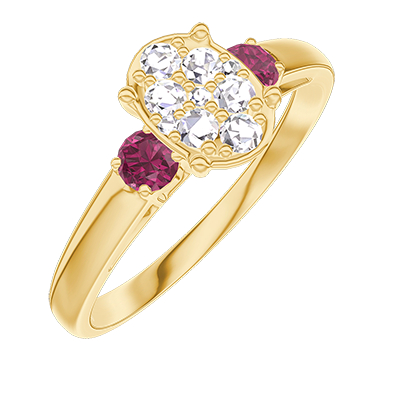 « L'ATELIER » NR. 210541Inel Aur galben 18 carate - Cluster de diamante naturale Oval echivalent 0.7 - Pietre laterale Rubin