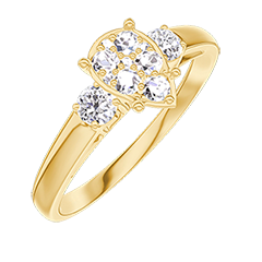 Inel Aur galben 18 carate - Cluster de diamante naturale Pară echivalent 0.7 - Pietre laterale Diamant