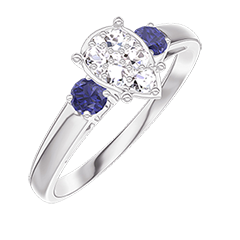 Inel Aur alb 18 carate - Cluster de diamante naturale Pară echivalent 0.7 - Pietre laterale Safir albastru