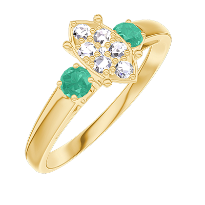 « L'ATELIER » NR. 210781Inel Aur galben 18 carate - Cluster de diamante naturale Marquise echivalent 0.7 - Pietre laterale Smarald