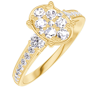 « L'ATELIER » NR. 211125Inel Aur galben 18 carate - Cluster de diamante naturale Oval echivalent 1 - Pietre laterale Diamant - Încrustare Diamant 4.8