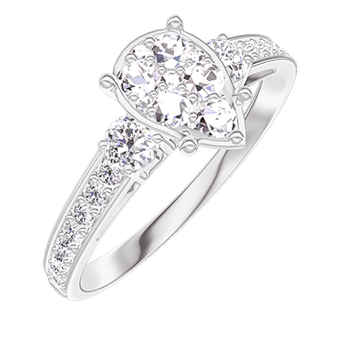 « L'ATELIER » NR. 211227Inel Aur alb 18 carate - Cluster de diamante naturale Pară echivalent 1 - Pietre laterale Diamant - Încrustare Diamant