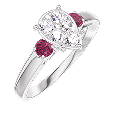 Inel Aur alb 9 carate - Cluster de diamante naturale Pară echivalent 1 - Pietre laterale Rubin