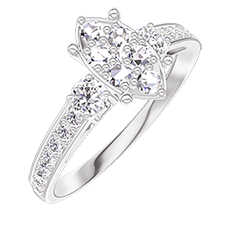 Inel Aur alb 9 carate - Cluster de diamante naturale Marquise echivalent 1 - Pietre laterale Diamant - Încrustare Diamant