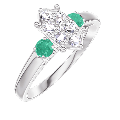 « L'ATELIER » NR. 211384Inel Aur alb 9 carate - Cluster de diamante naturale Marquise echivalent 1 - Pietre laterale Smarald